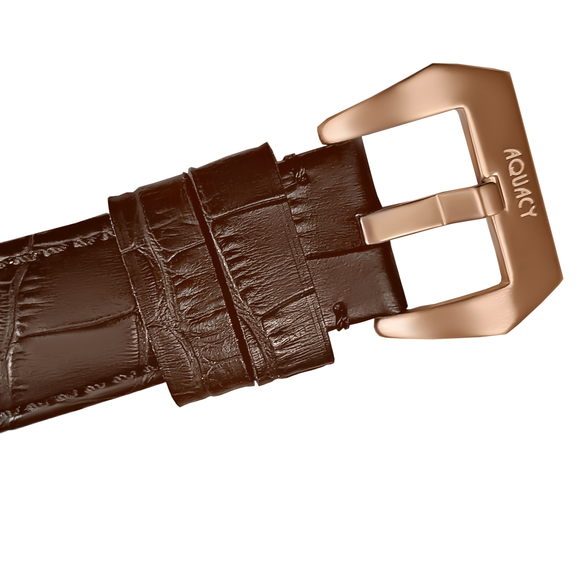 | Clasp | Tang Buckle, Brushed Stainless Steel in Rose Gold Tone with Aquacy Logo |