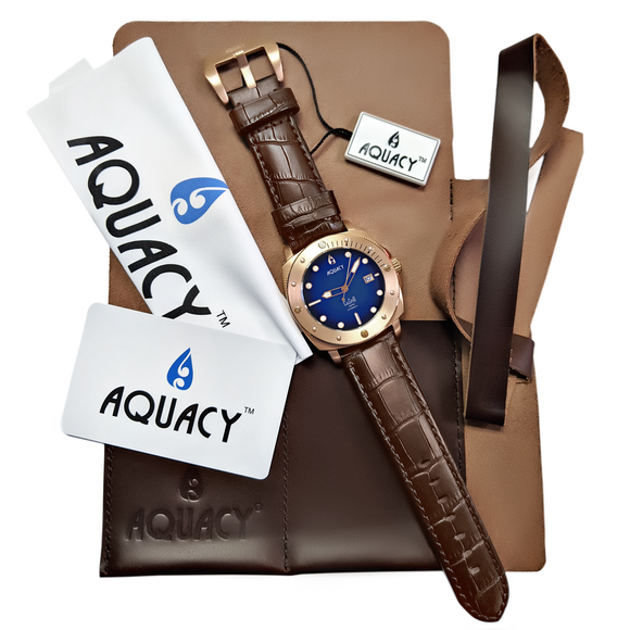 | Box Includes | Watch, Aquacy Branded Genuine Leather 2 Watch Roll, Warranty Card, Polishing Cloth and Hang tag. Link to Online Manual. We Did a Watch Roll So You Can Have Something You Can Actually Use Instead Of a Cardboard Box. |