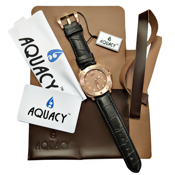 | Box Includes | Watch, Aquacy Branded Genuine Leather 2 Watch Roll, Warranty Card, Polishing Cloth and Hang tag. Link to Online Manual. We Did a Watch Roll So You Can Have Something You Can Actually Use Instead Of a Cardboard Box. |