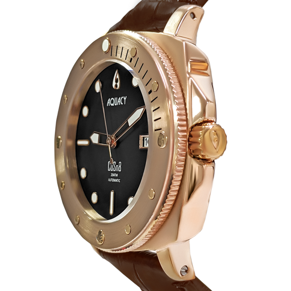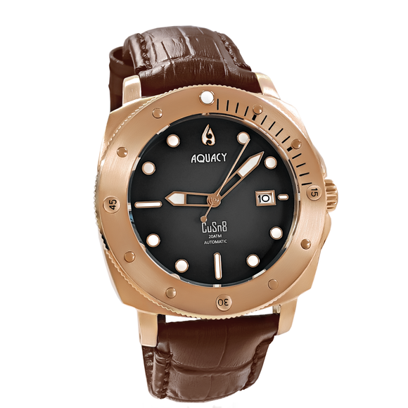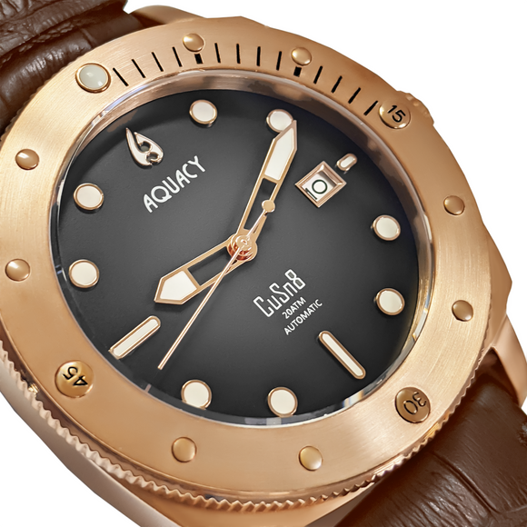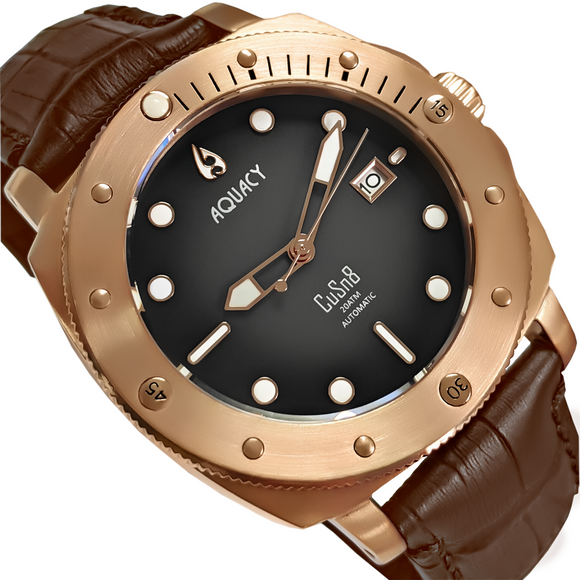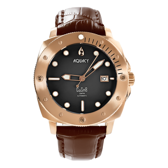 Aquacy Bronze CuSn8 Series Automatic Men's 200m Watch 44mm Black/Gray Dial Brown Strap