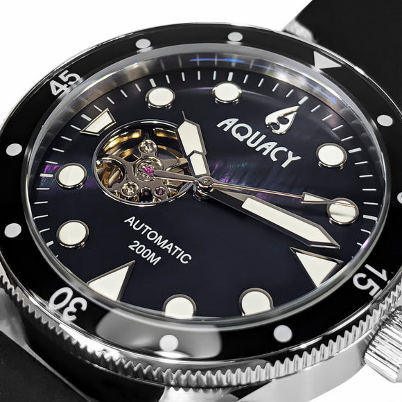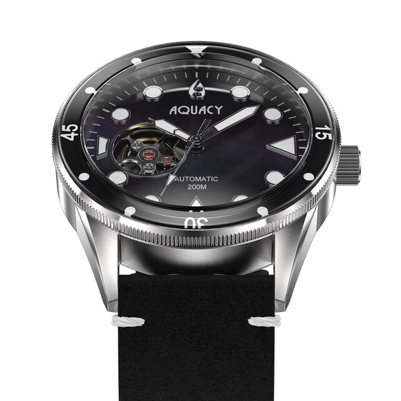 Aquacy Hei Matau Cave Diver Open Heart Men's Automatic 200M Black Mother of Pearl Dive Watch CD.38.BKMOP.B.L