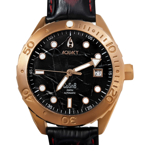 Aquacy Bronze CuSn8 Men's Marble Automatic Watch with Leather 200M