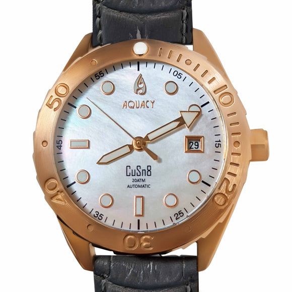 Aquacy Bronze CuSn8 Men's Mother Of Pearl Watch Automatic with Leather 200M