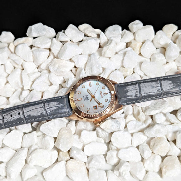 | Hands | 3 hand, Rose Gold Tone with with Japan Lume |